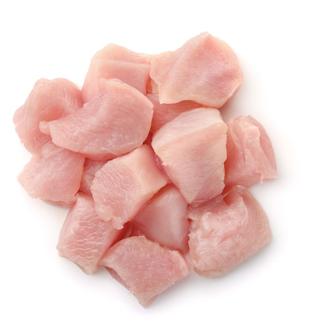 Trozos de pechuga sin piel y sin hueso. Una excelente opción para saltear, usar como topping o para desmechar